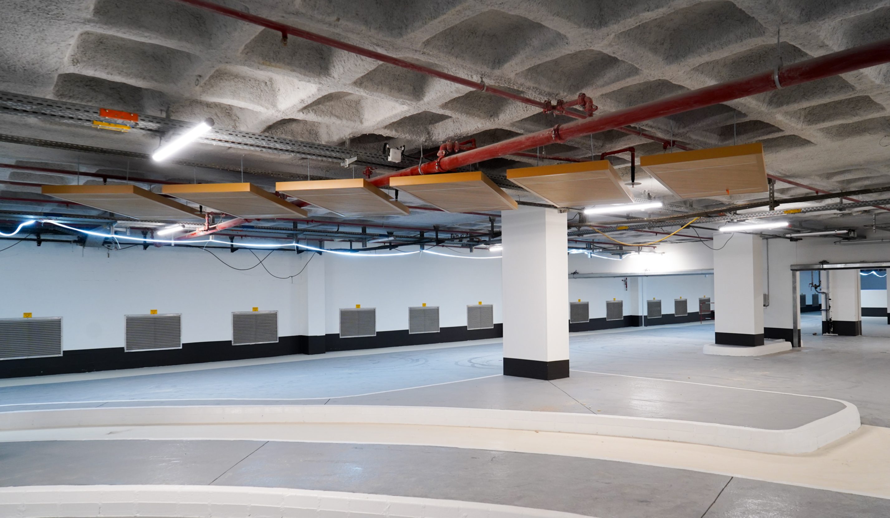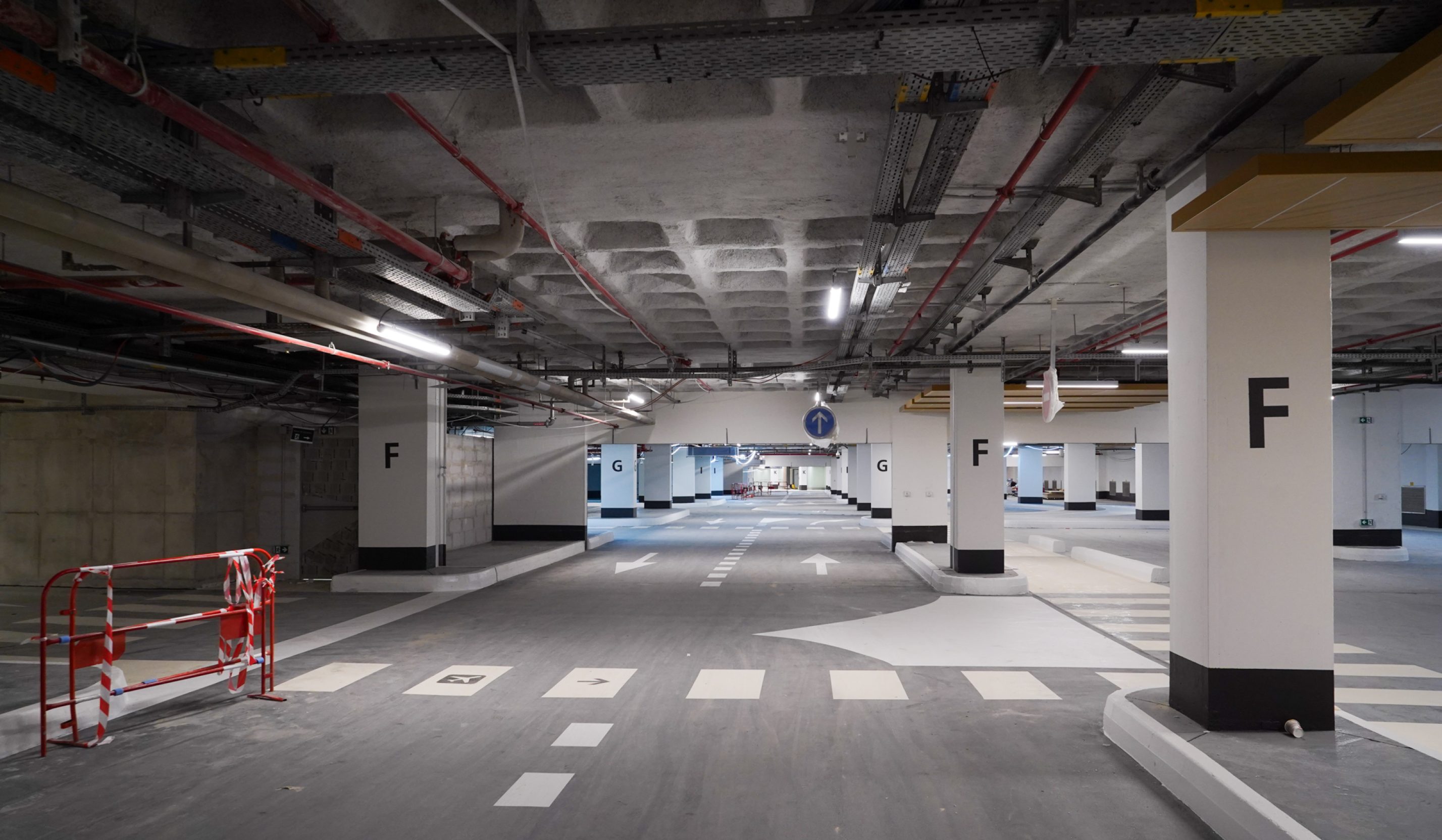 Concernant le projet du Parking P2, celui-ci se situe en dessous du projet de l’Esplanade. En tant qu’OPC, on y joue un rôle assez important de coordination verticale. Les travaux à réaliser sur l’Esplanade ne doivent pas impacter en termes de délai et de sécurité les travaux du parking. Cela concerne par exemple les chutes de gravats ou d’infiltrations d’eau dus à la réfection des joints de dilatation et à la reprise de l’étanchéité de la dalle. À cela, on peut ajouter le suivi des travaux de réhabilitation et revalorisation du parking. Ces travaux sont axés autour de thématiques, une thématique technique avec notamment de l’hydrodémolition pour des renforts structurels, l’ajout de sprinklage, la remise en état du désenfumage. Et une thématique esthétique avec notamment les résines de sol, les peintures, les habillages et l’électrification du parking avec l’ajout de bornes de recharge électrique. »