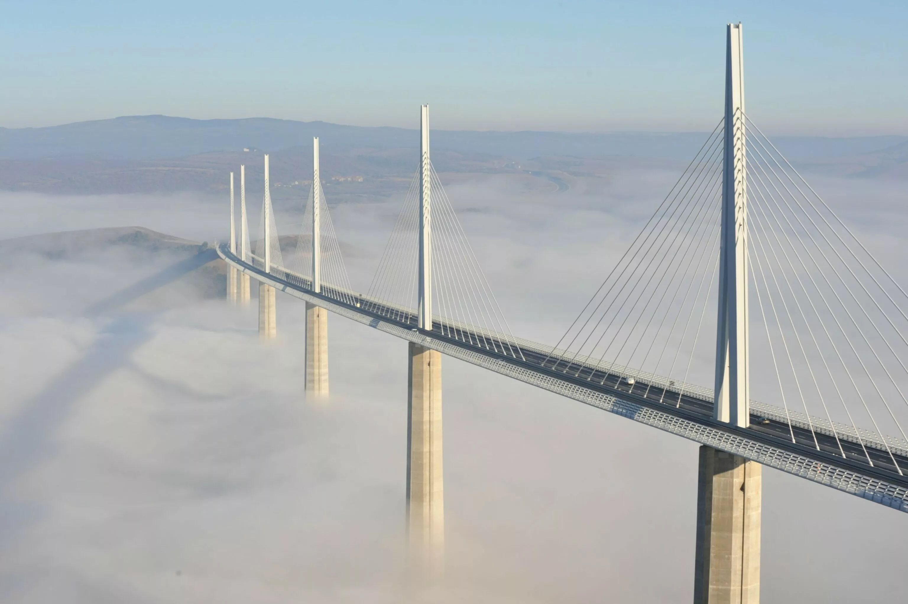 Le Viaduc de Millau est le record du monde des travées multi-haubanées. La variante en tablier et pylônes en acier proposée par le groupe Eiffage constitue une première par son mode de construction original pour un ouvrage de taille exceptionnelle.